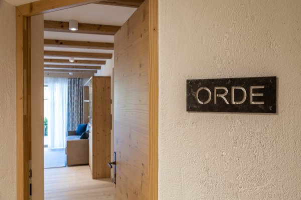 Das Zwei-Zimmer-Appartement Orde besteht aus einem Schlafzimmer und einem großzügigen Wohnbereich mit offener Küche. Der Wohnbereich verfügt über ein Schlafsofa für ein Kind. Das Apartment präsentiert sich in einem Farbenspiel aus Weiß bis Grau mit hellblauen Akzenten. Die Holzmöbel sind naturbelassen und modern interpretiert.