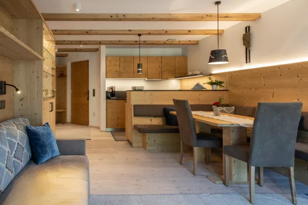 Bettwäsche, Handtücher, Haartrockner, Brötchenservice, Wanderstöcke, Skiraum mit Schuhtrockner, Tiefgaragenstellplatz, freier Eintritt ins Mar Dolomit Hallen- und Freibad, Vergünstigungen beim Val Gardena Active-Wochenprogramm, freie Nutzung der Val Gardena MobilCard, Endreinigung des Apartments. Der Grödner Sommerbus und der Winter-Skibus halten direkt vor unserem Haus.